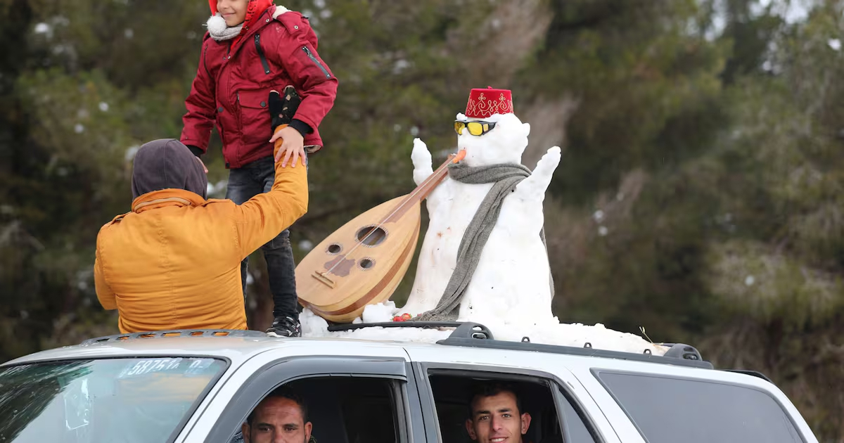 Snow in Libya sparks joy for children off school and adults in search of fun